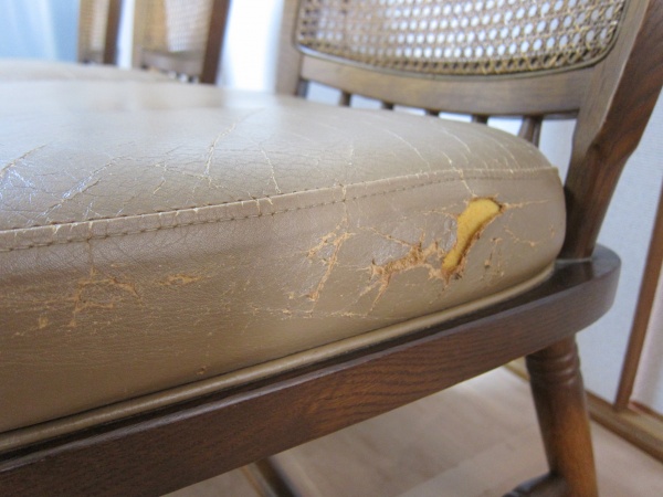 今日は、座面の革にヒビが入ったり、破れがあったダイニングチェアの修理のご紹介です。