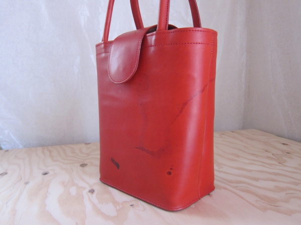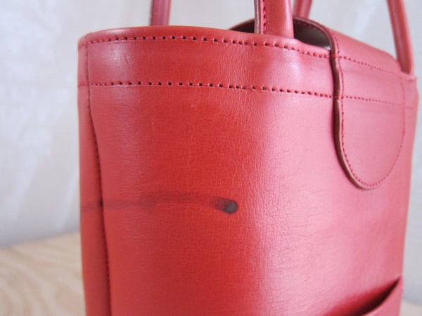 赤い丈夫な革のバッグに黒く焦げたような跡が付いていて使えないので、