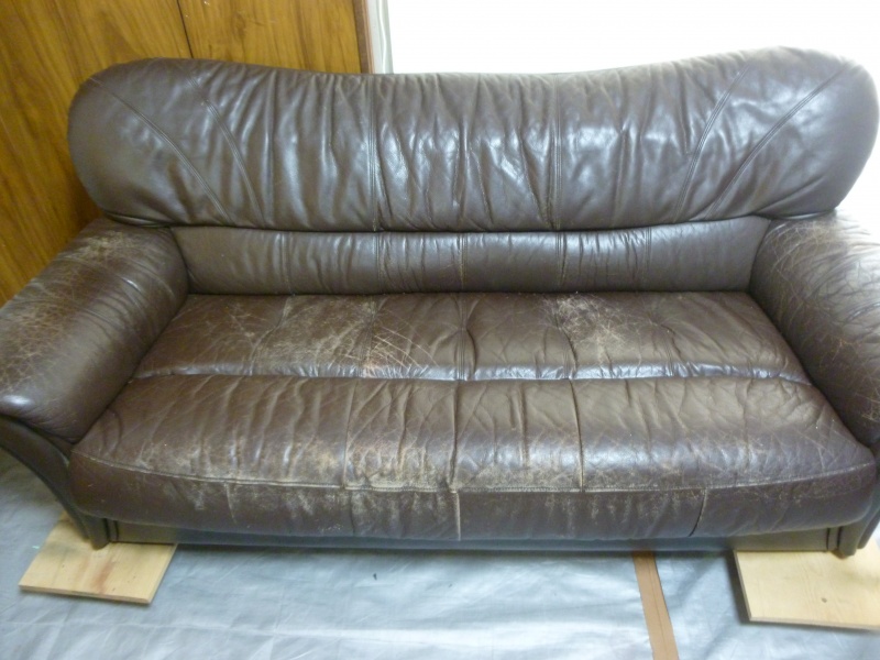 カリモク 3人掛ソファー修理/破れ補修&ペットキズ補修&染め直し&ツヤ調整&防汚加工&ペット染み(汚れ)補修を鹿児島市より御依頼頂きました。