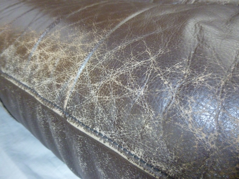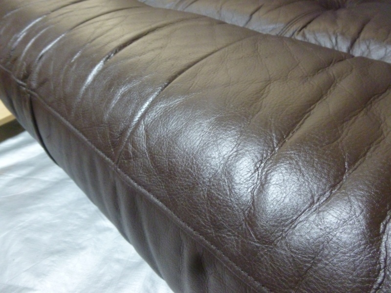 さて今回のソファーの考察に入りますが、愛するワンちゃんのおしっこ等が染みになっているところも多くそれが原因で革の劣化を招き、破れになっている個所が3か所ございました。その部分は、オーナー様の御意向で張り替えずに解体後、裏から縫製をしております。またワンちゃんの爪などのひっかき傷等も多くございました。実際に作業に入ると、見る段階より、結構手ごわかったです(笑)