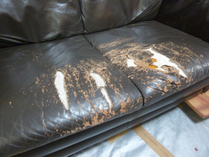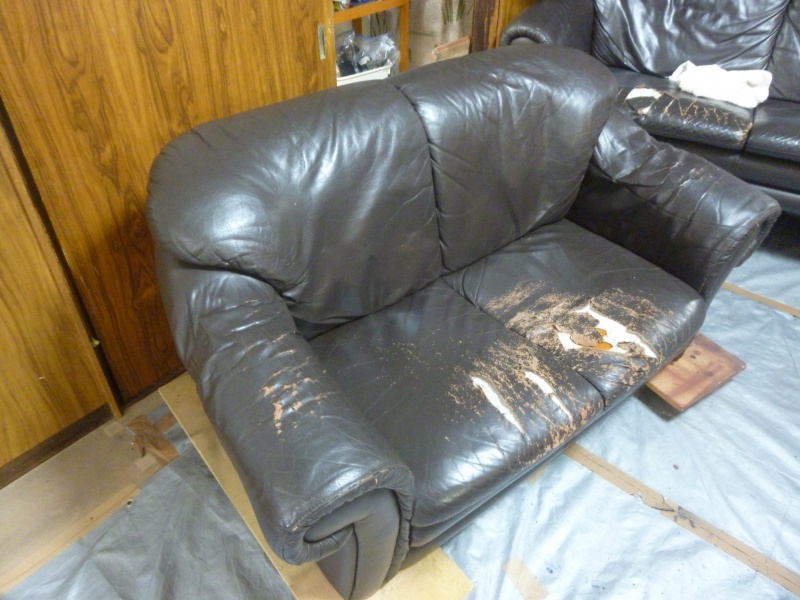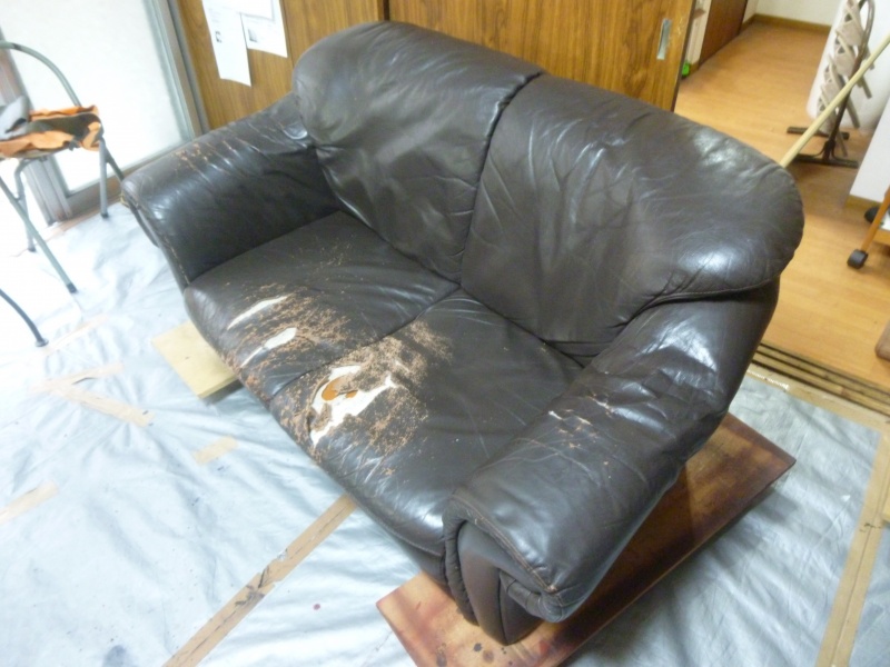 2人掛け ソファー修理/破れ補修&ヒビ割れ補修&キズ補修&ツヤ加工の「張替えない補修」を鹿児島市より御依頼頂きました。