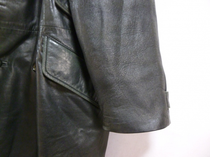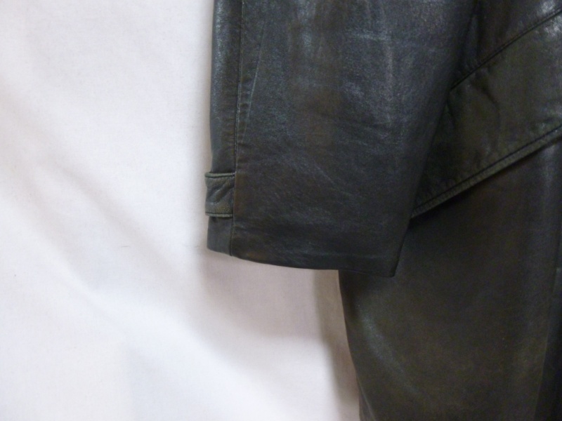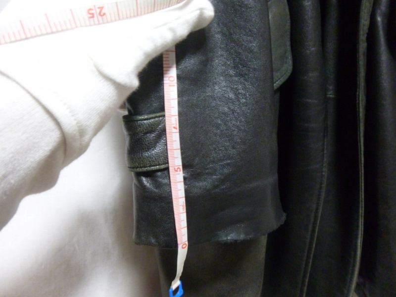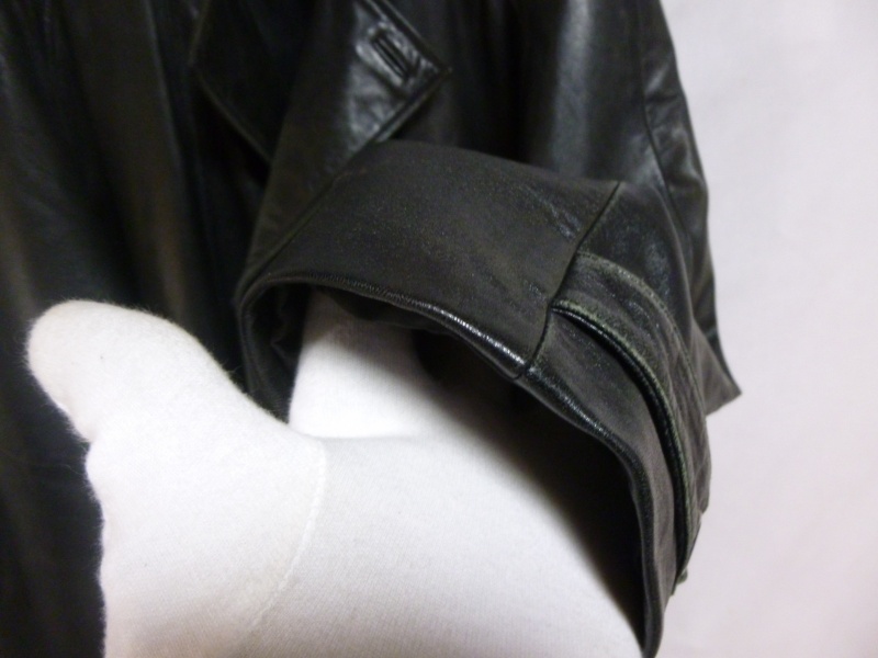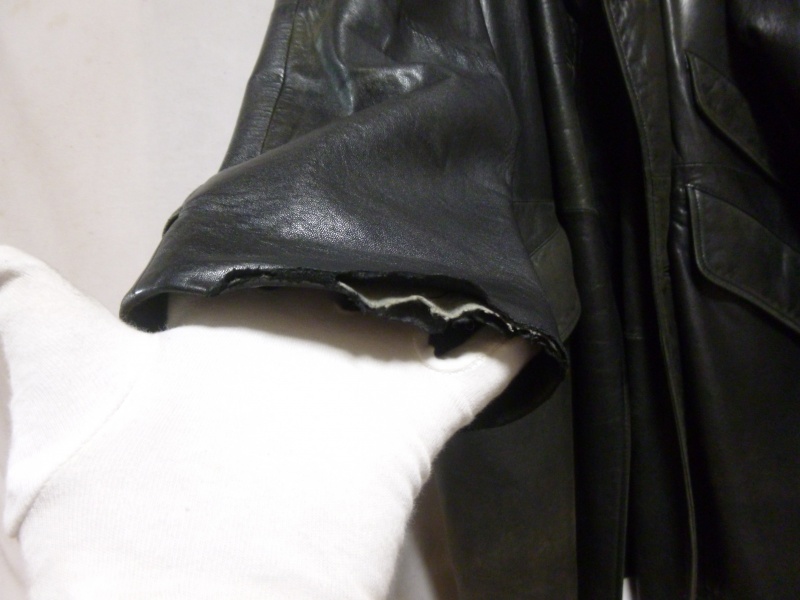 革ロングコート サイズお直し修理/鹿児島市より破れ補修&袖(丈)詰め2cm補修の御依頼です。