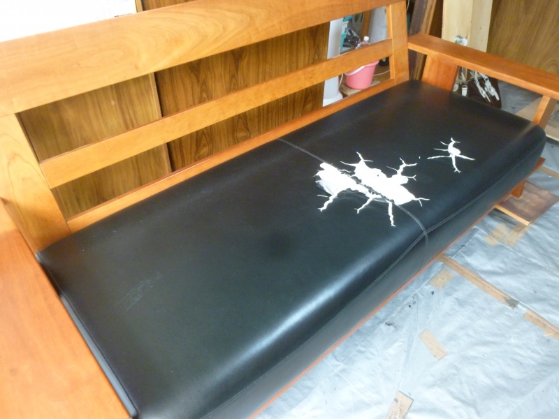 ソファー 張替(合皮)修理/鹿児島市より2人掛けソファーの座面張替修理の御依頼です(合皮編)。