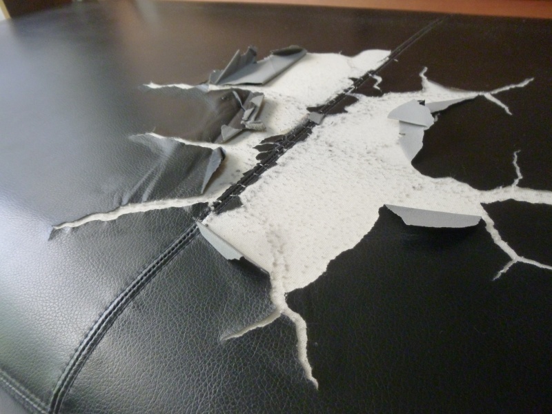 合皮の場合は、基本的に張替か買替しか方法はございません。本革ソファーの場合は、張替えない修理方法もございます。