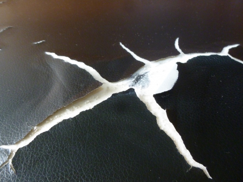 合皮の構造は、わかりやすく言うと、布地の上に革のような模様を付けたポリウレタンを接着剤でくっつけている。。といった構造になります。この接着剤の寿命が5-7、8年と言われております。ですので経年劣化でボロボロしてきます。