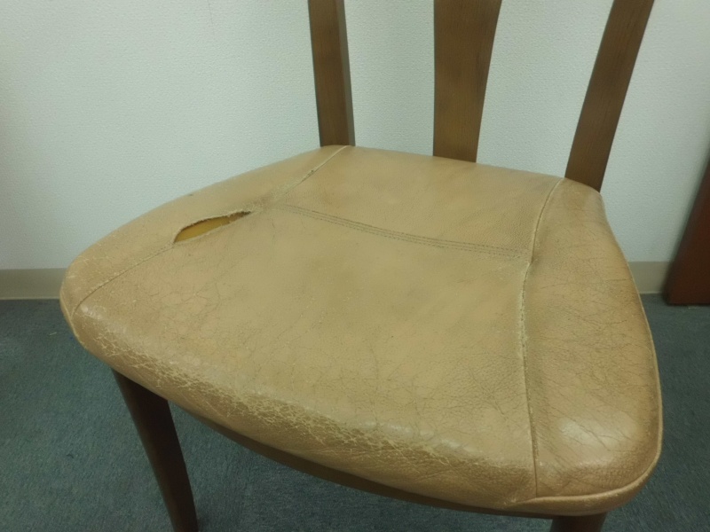 ダイニング椅子 張替修理(革➡革)/鹿児島市よりダイニング椅子座面破れ症状による張替修理のご依頼です。