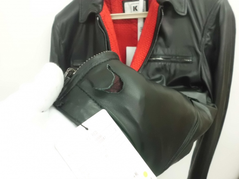 革ジャケット 破れ補修/鹿児島県鹿屋市より革裂けによる破れ補修のご依頼です。
