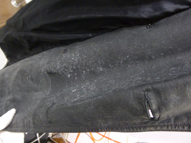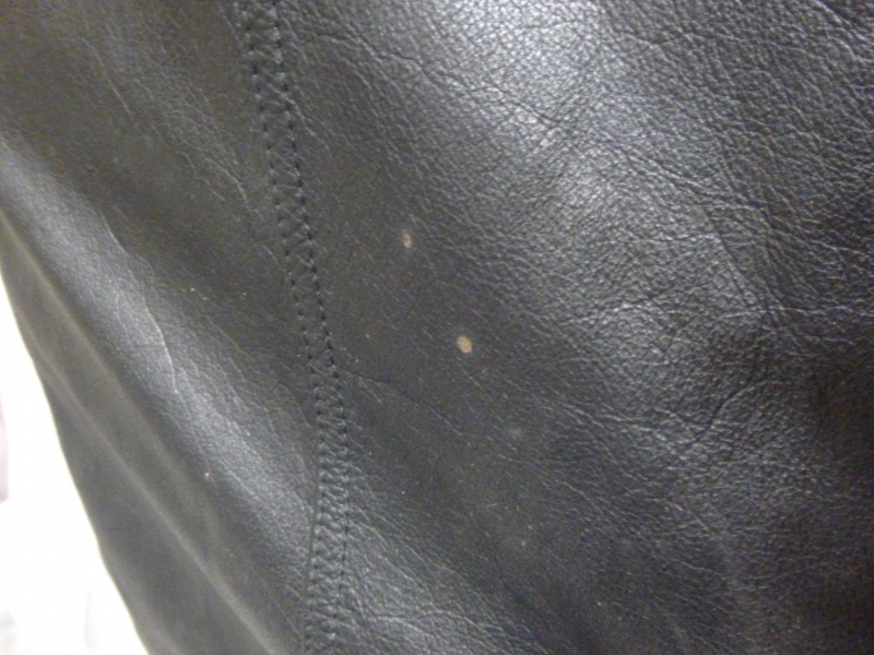 全体的にカビが目立っておりましたが、表面上のカビではなく染みになってる個所が数多くみられましたのでこの部位もクリーニング・脱脂後染め直しております。
