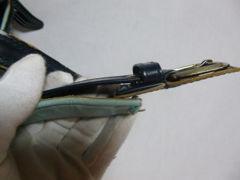 2ヵ所の縫製で施工しております。本来は写真金具(カシメ)と上下の革を挟み込んで留めてありますがそこまでするとご予算オーバーになり、あと3ヶ月ということで応急処置的な施工方法になっております。