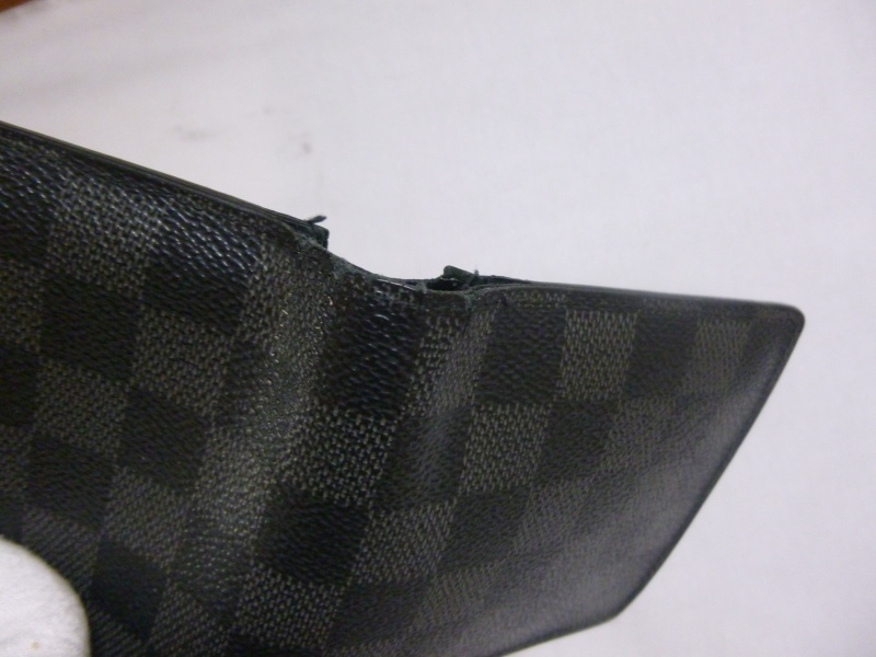 ルイ・ヴィトン(ダミエ)財布修理/折り曲げ部分(コーナー部分)破れ裂け補修を鹿児島県南九州市より御依頼頂きました。