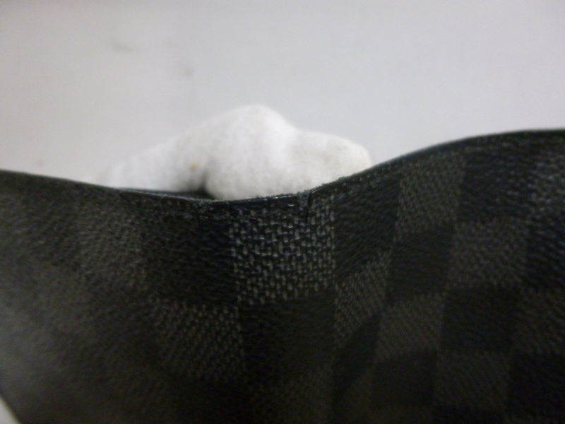 ルイヴィトン(ダミエ)財布修理/カード入れ部分の裂け&角ほつれにより縫製修理を鹿児島県沖永良部島より御依頼頂きました。