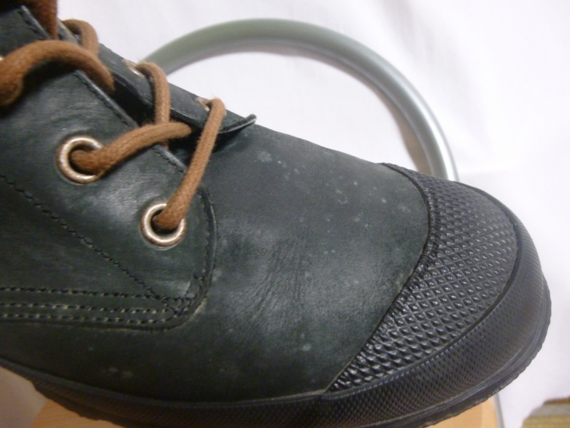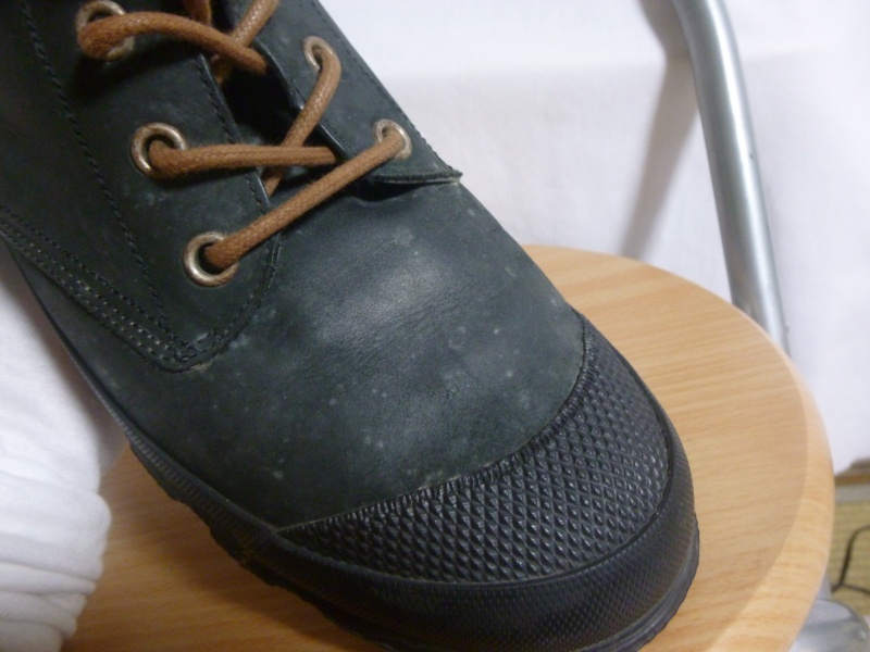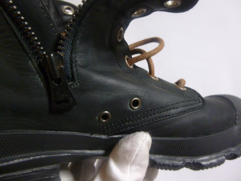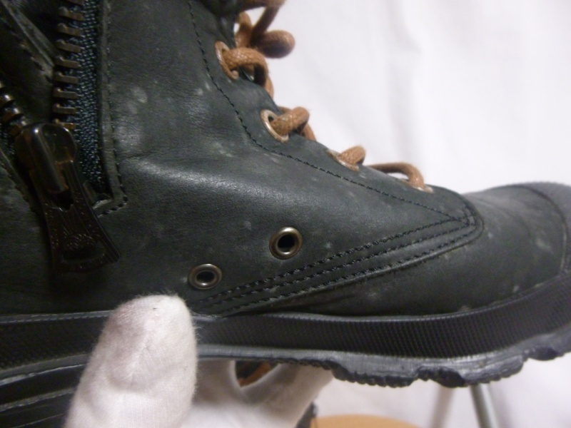 全体的に色あせやスレ傷などが目立っていた商品でした。色に関しては、ブーツ内側の革の色あせのしていない部分に合わせてあります。