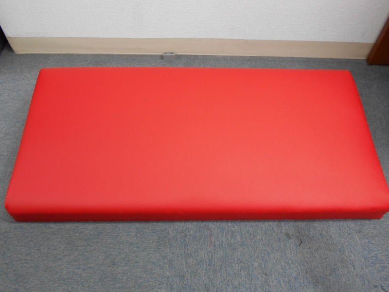 ボックス椅子 座面張替(合皮)/鹿児島県内某アミューズメント施設様より個室内ボックス椅子の座面張替修理のご依頼になります。