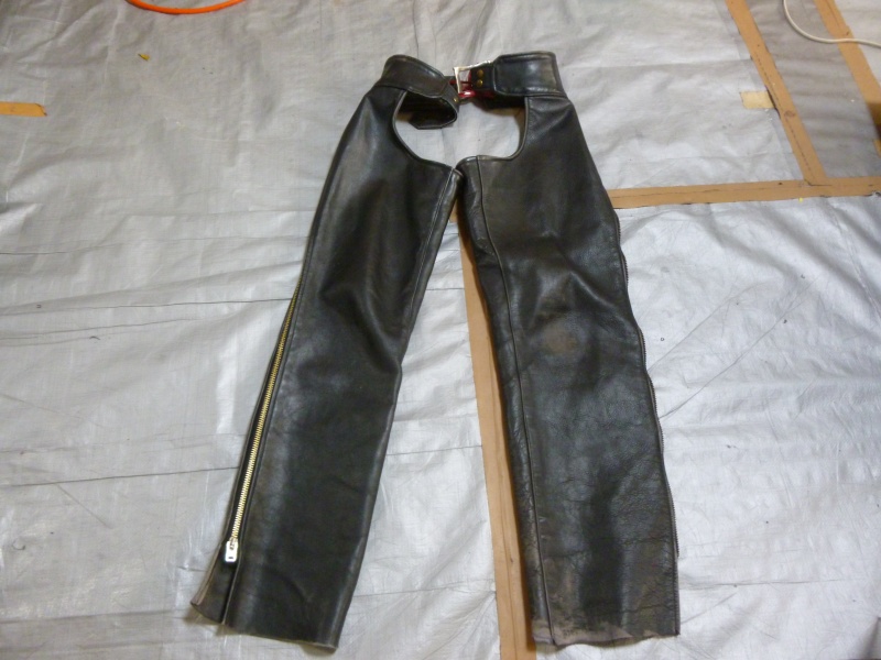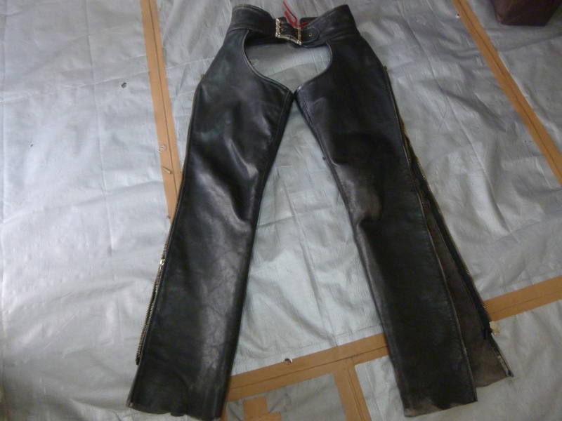 本革チャップス(バイクウェア) 修理/スレ傷補修&ひっかき傷補修&染め直し&ツヤ加工を鹿児島県出水市より御依頼頂きました。
