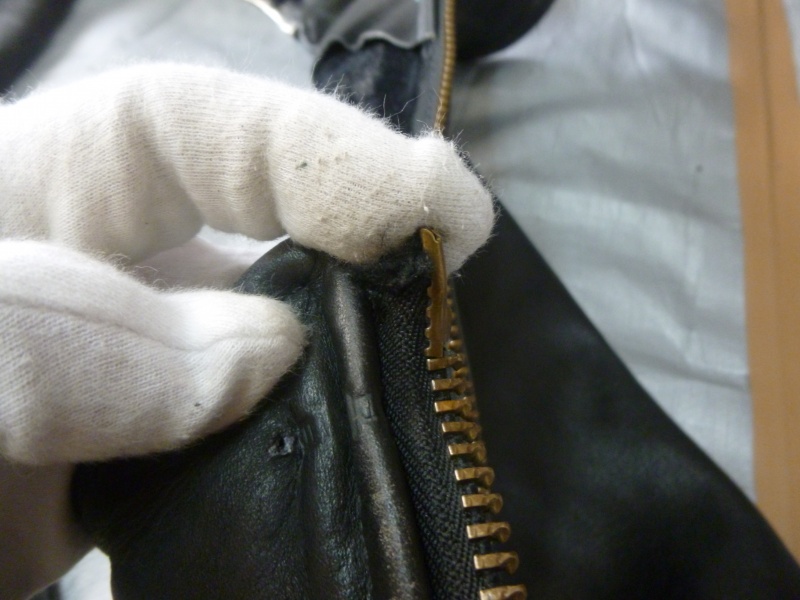 ファスナー部位の縫製、マジックテープに関してはオーナーさまお持ち込みで「ここにつけて欲しい」とのご要望もございましたので、その通りの縫製でした。バックもそうですが、革ジャケットや革パンツ等の縫製は糸目が見えてないものが大半ですので一度裏地の処理から始める場合が多いです。