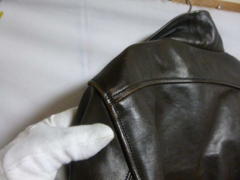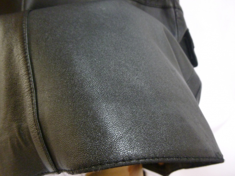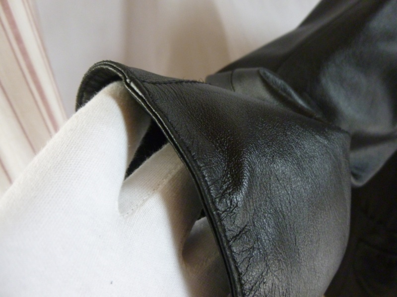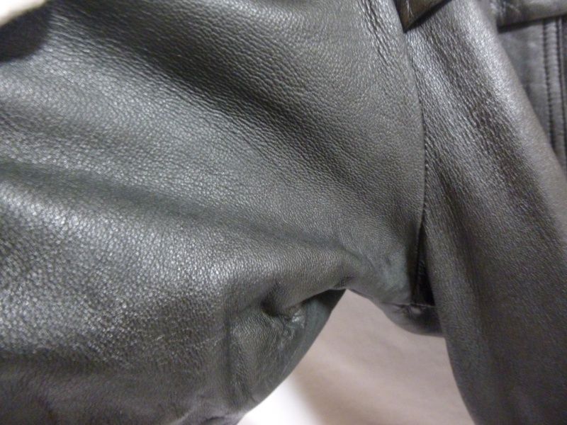 このように、特に普段着ていて特に重みや引張りの力が加わらない部分に関しては、【裏革当て。境目なくしていく加工】を私は致します。その当たりはご依頼時にオーナー様と打ち合わせして進めていきますので、ご安心くださいませ。