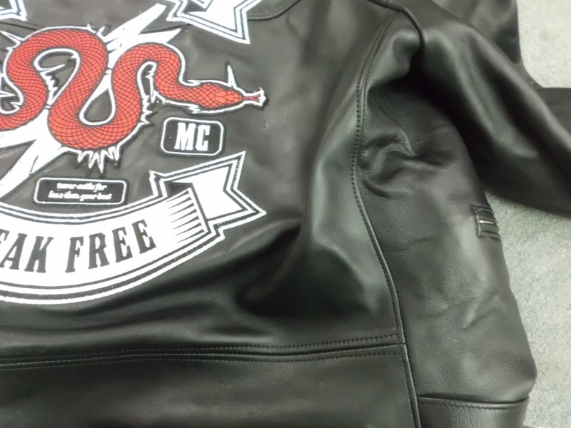 革ジャケット 縫製修理/鹿児島市よりワッペン外れに伴う取付縫製修理のご依頼です。