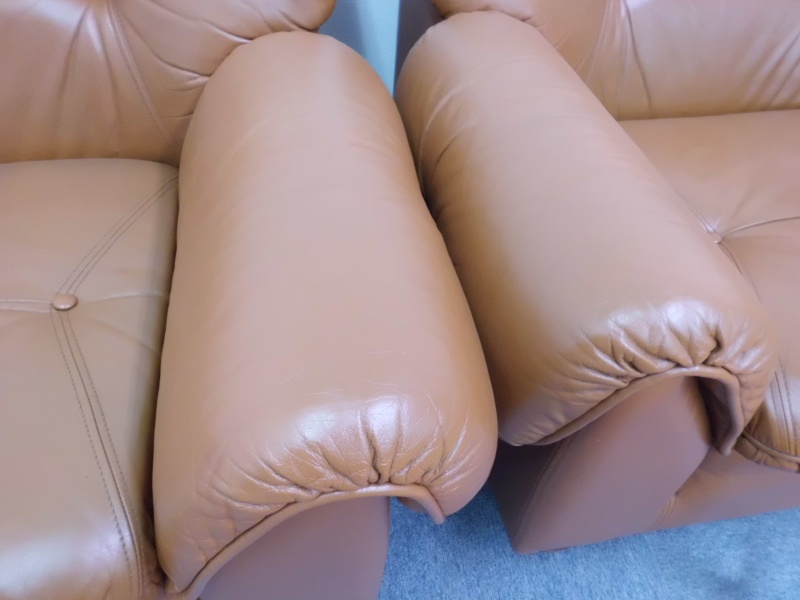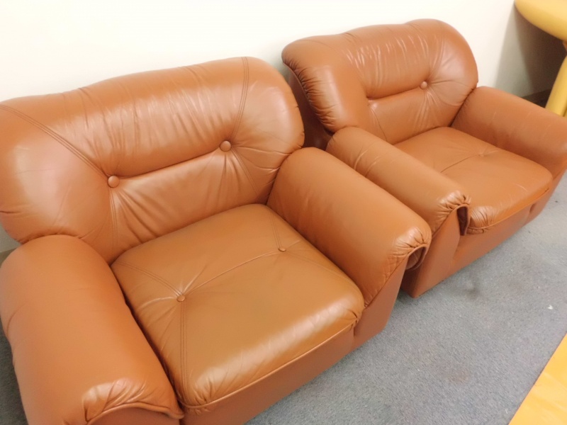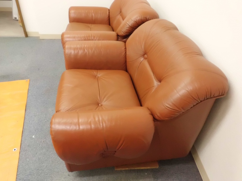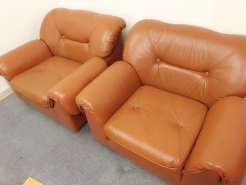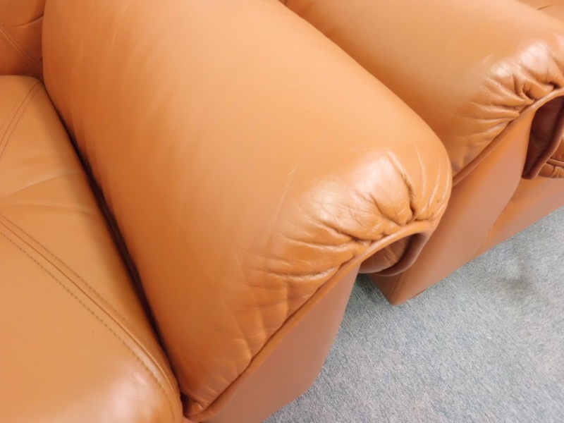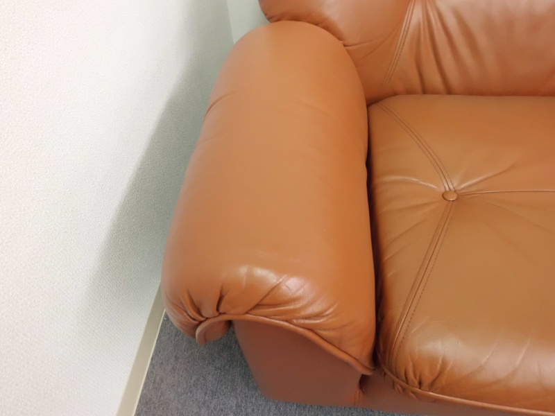 1人掛け革ソファー【張替えない】修理/鹿児島県薩摩川内市よりヒビ割れ補修&スレ傷補修&色落ち補修&黄ばみ補修&色落ち補修&コーティング加工&ツヤ調整の御依頼です。