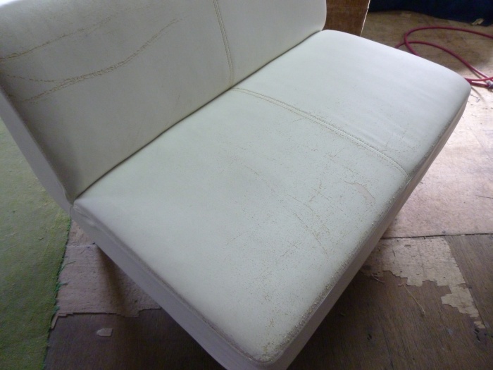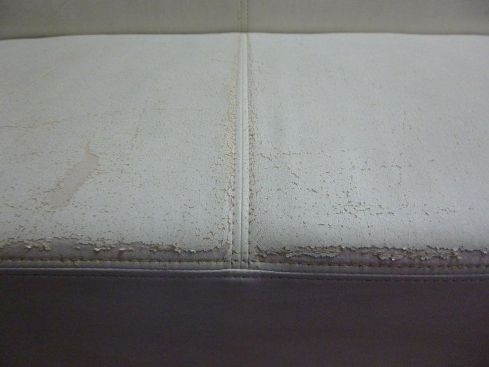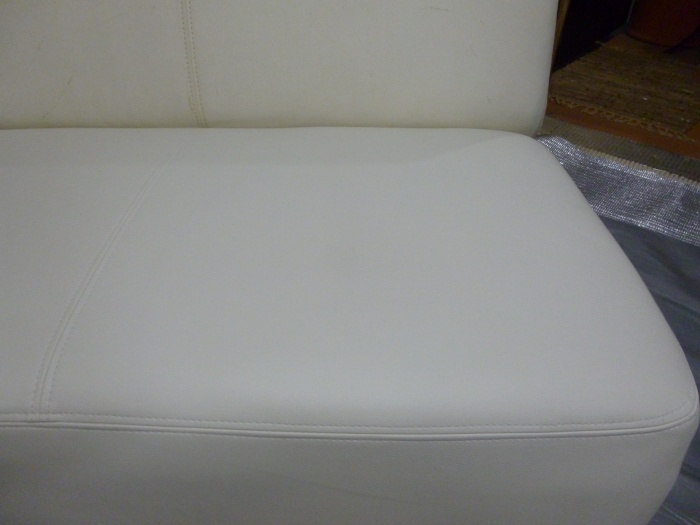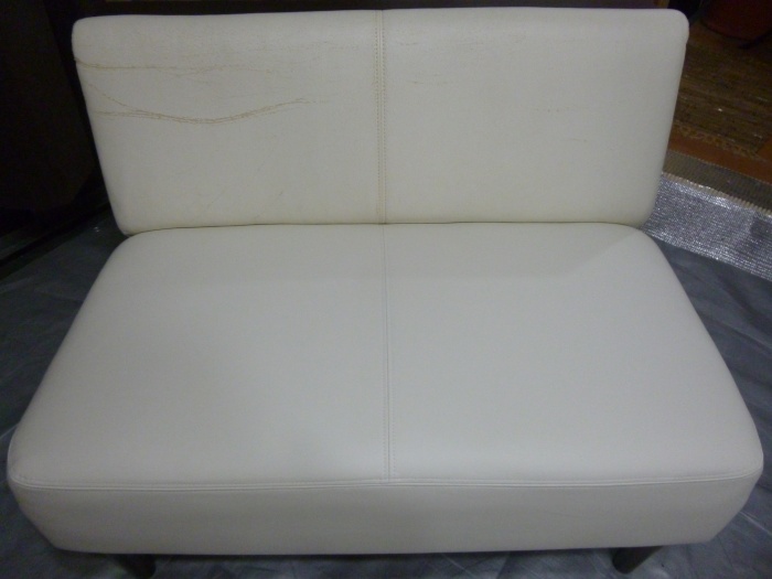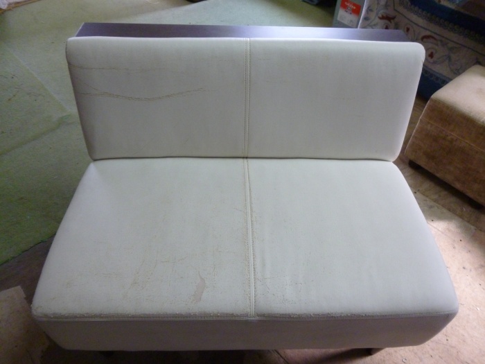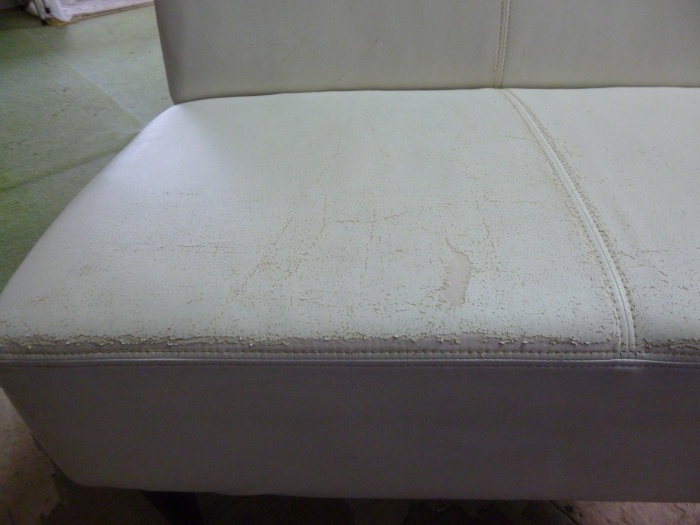 合皮の場合は、リペアが難しいため、このように張替をお薦めしております。