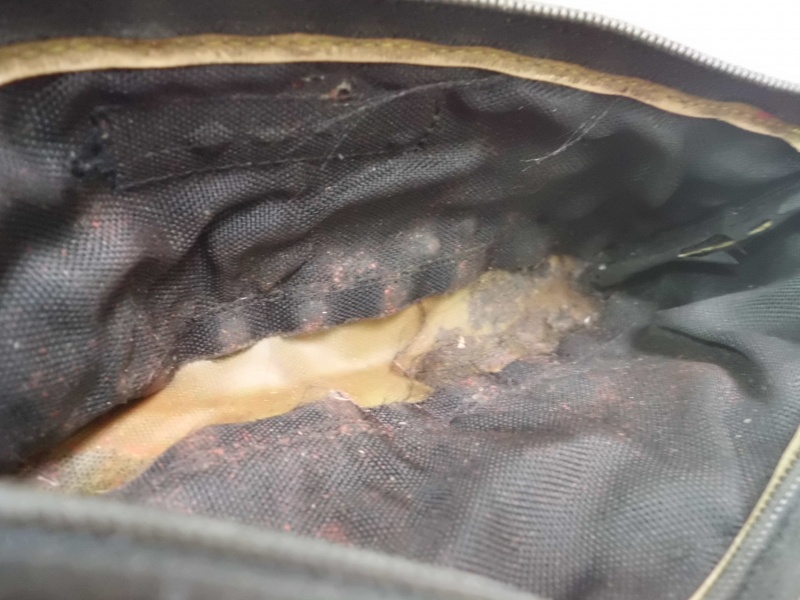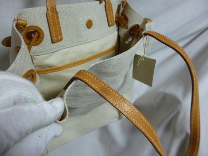 イラストの部分は、革でのご依頼でしたので既存仕様の革の色と近い革を使用しております。また、ショルダーに関してですが、今回は、ナイロンショルダーの一般的なモノを使用しております。近いモノを探しましたが、このヌメ側のような色のベルトがなかったので、オーナー様ご了承のもとこちらの色のショルダーを付けております。