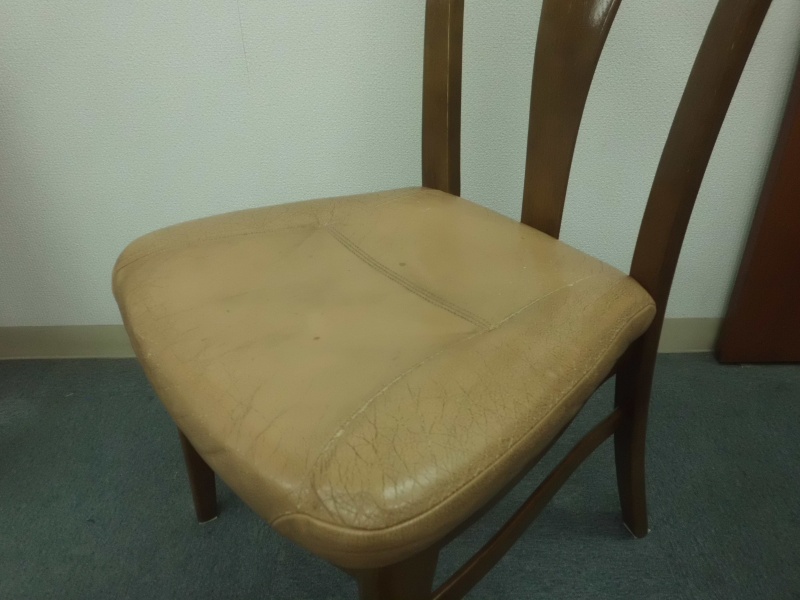 ダイニング椅子(革)張替修理/鹿児島市内より破れ&ひび割れ等の経年劣化症状による張替修理のご依頼です。