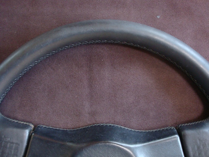 ステアリング右側の破れ、全体的なスレ、キズ、色の退色がかなりきれいになりました。