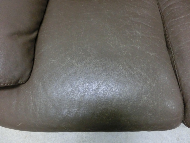 本日は重厚感溢れるナツッジの2人掛けソファのキズ修理・お直しをご紹介いたします。