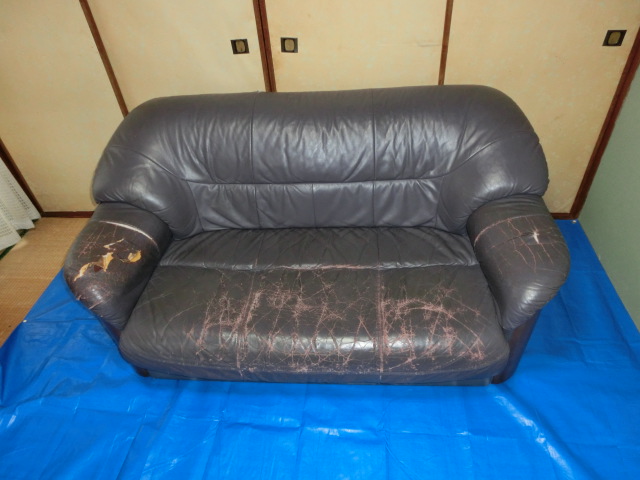 レザーソファの修理 部分張替えと染め直し