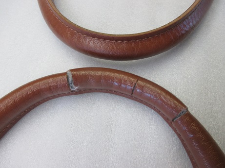交換した革部品、元通り白いステッチで縫いつけて違和感なしです。