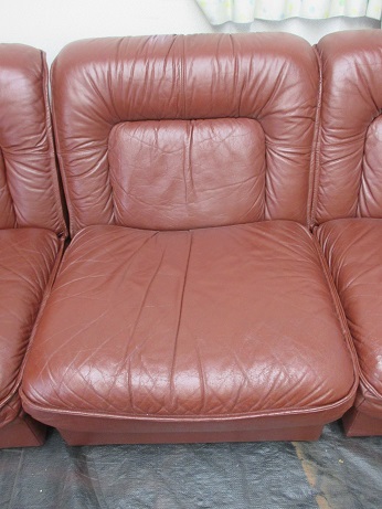 1人用がセパレート式になっていて並べ替えられる本革ソファー・・・座面や肘置きのキズが気になる、ということでリペアを承りました。