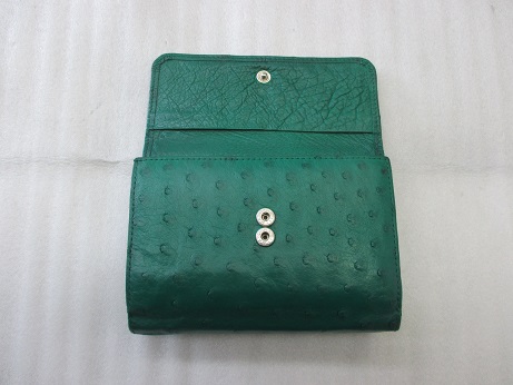 クイルマークが特長のダチョウの革(オーストリッチ)のお財布・・・使いやすくて気に入っているが表面が黒ずんでしまってどうにかしたい、ということでリペアを承りました。